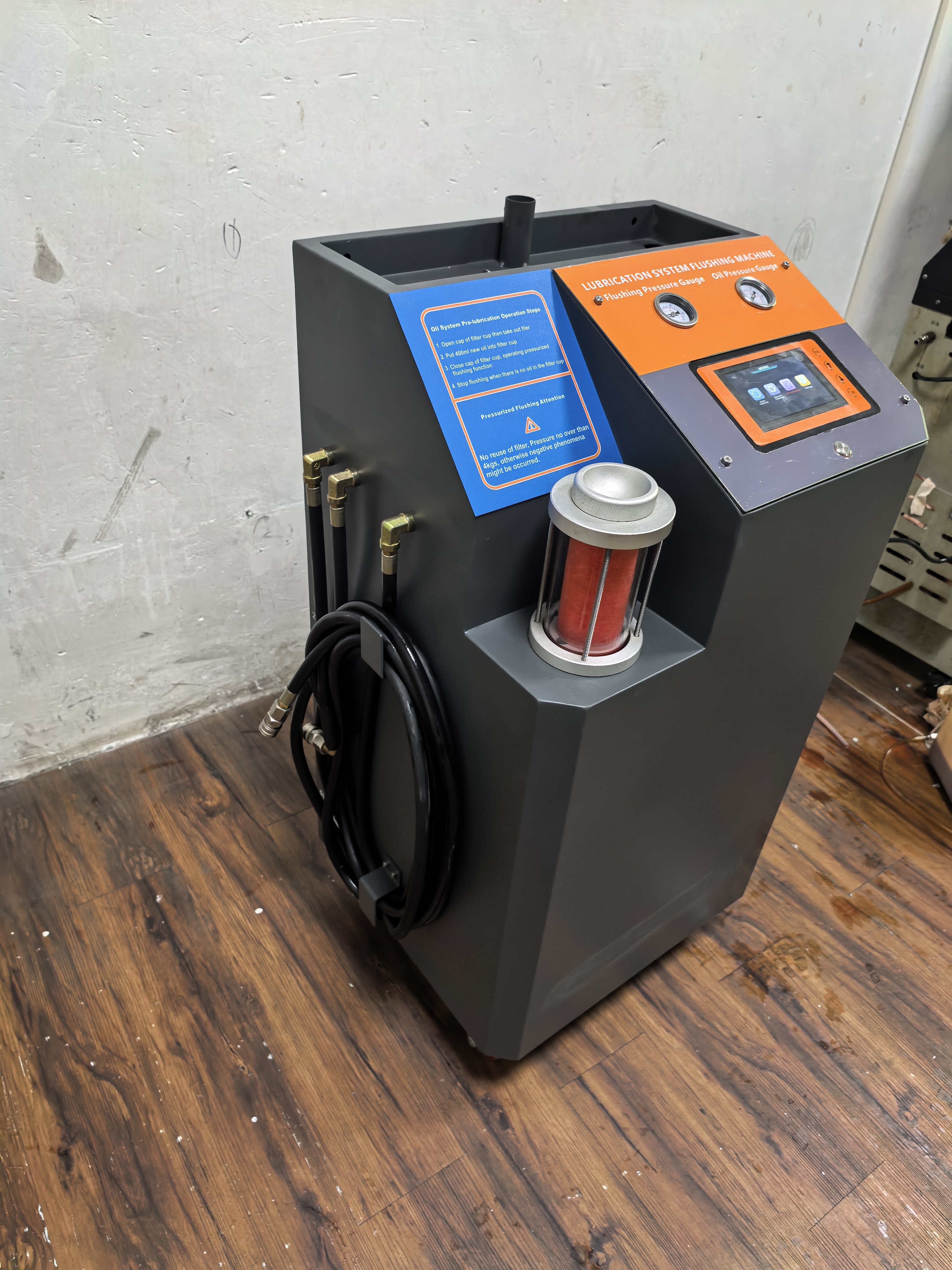 Funktionen: Reinigung der Ölfüllung; Reinigung des Kreislaufs,Recycling von Reinigungsöl, Luftblasen, Vorschmierung, benutzt, um zu zählen.